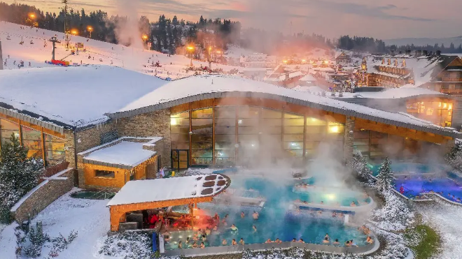Termy Bukovina – 20 niecek basenowych, zjeżdżalnie o łącznej długości 150 metrów, masaże wodne; Terma Bania w Białce Tatrzańskiej - 14 basenowych niecek, zjeżdżalnie o łącznej długości ponad 300 metrów, gejzery, armatki wodne, jacuzzi, sztuczne fale